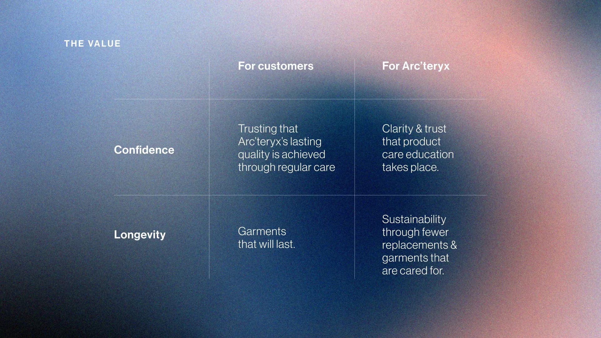 Convey product care importance while dispelling misconceptions, particularly for customers with limited touchpoints with Arc'teryx.